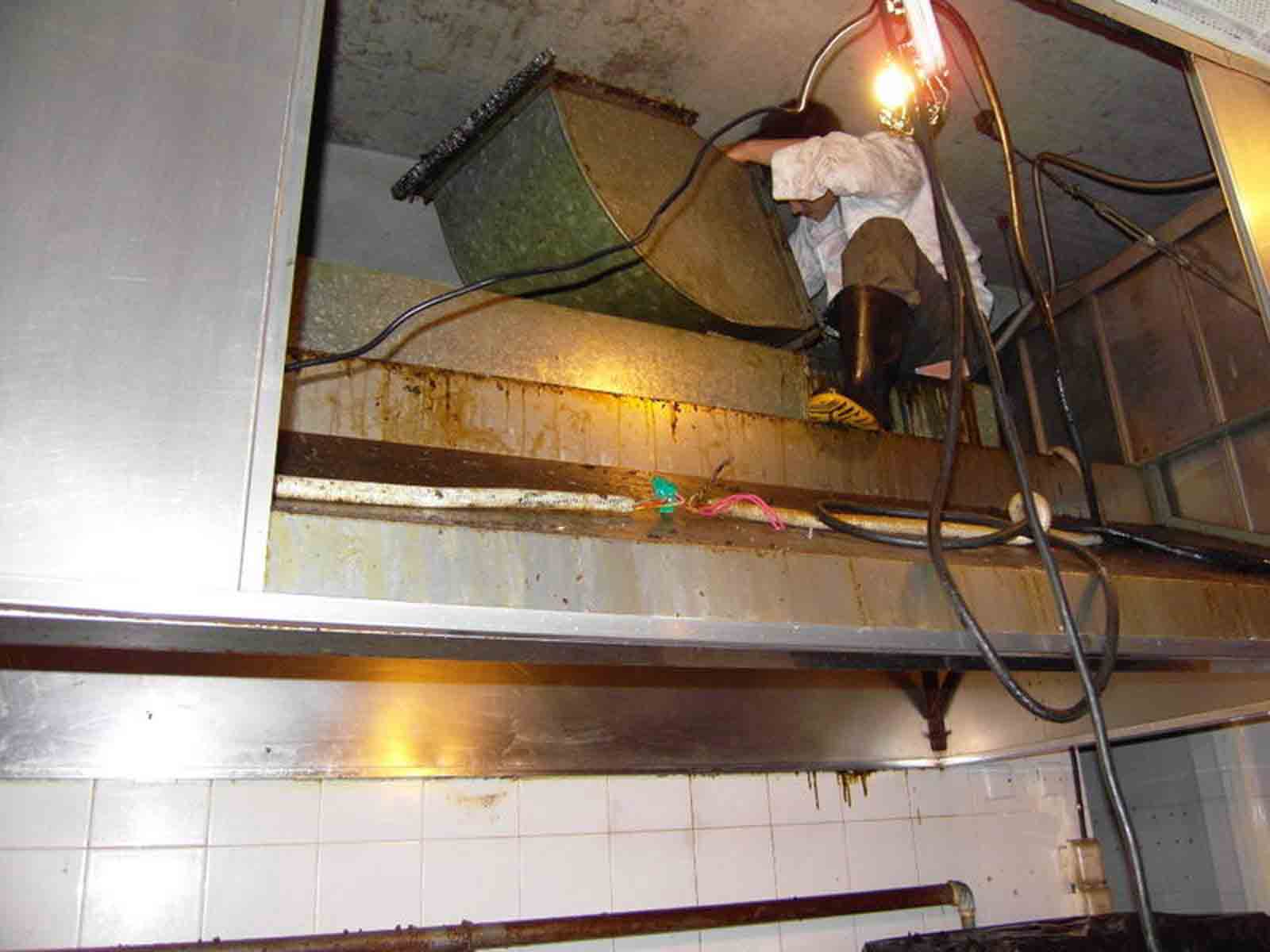 油煙管道清洗內容包括煙罩表面、煙罩內的燈罩、排風(fēng)口、排煙口以及電機、灶臺表面。油煙管道清洗清洗的重點(diǎn)是排煙口與煙罩相連處并和煙罩同步平行的排油煙管道清洗。重點(diǎn)對平行油煙管道內部進(jìn)行徹底清潔。采用的主要方法是專(zhuān)業(yè)人員進(jìn)入油煙管道清洗內部進(jìn)行清潔。對于排煙口窄小,人工無(wú)法進(jìn)入油煙管道或由于油煙管道走身狹窄、人工觸及不到無(wú)法進(jìn)行清潔,但又存在著(zhù)重大隱患的,